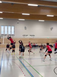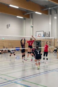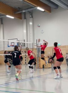 Am Samstag, den 27.09.2025, starteten wir in unseren ersten Spieltag – zum allerersten Mal in dieser Konstellation als Team. Nach einer kleinen Friseur-Session mit Zöpfen und einer intensiven Erwärmung ging es topmotiviert los. Gleich zum Auftakt warteten unsere Vereinskolleginnen der VSV Jena Damen 4, gegen die wir bereits am Dienstag getestet hatten. In den ersten beiden Sätzen konnten wir unser volles Potenzial abrufen und gewannen klar mit 25:8 und 25:7. Im dritten Satz ließen wir dann die Konzentration schleifen, machten zu viele Eigenfehler und gerieten knapp in Rückstand. Doch am Ende bewiesen wir Nervenstärke und entschieden auch diesen Satz mit 25:23 für uns.