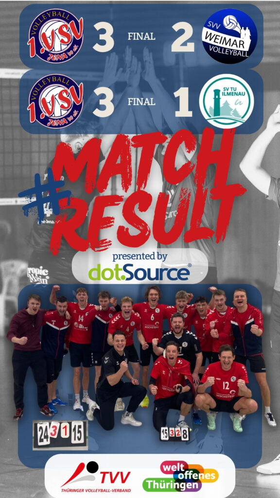 Im zweiten Spiel gegen Ilmenau taumelten die Lichtstädter noch siegestrunken in den ersten Satz. Völlig schwebend oberhalb des Spielgeschehens überließ man den TUlern das Spielgeschehen und hatte direkt das Nachsehen. Coach Leon musste in der Satzpause dies Jungs wieder auf den Hallenboden holen, mit Erfolg. Der Fokus war wieder eingestellt und die Gäste kamen unter die Räder. In drei eindeutigen Sätzen wurde Ilmenau kompromisslos niedergerungen und die 3 Pünktchen in der Saalestadt behalten.