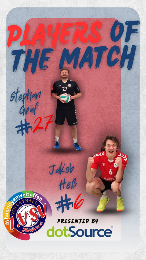 Doch diesen Rückschlag verarbeitete der VSV blitzschnell. Der Annahmeriegel um Pepe, Jakob und Doktor Gräf war nicht mehr ins Wanken zu bringen. Somit brauchte man sich quasi überhaupt keine Sorgen um den eigenen Sideout machen. Auf der anderen Seite gelang es immer wieder, den jungen Erfurter Riegel zu stören und für einen komplizierten Aufbau zu sorgen – deren Angriffsfehler häuften sich nun und der dritte Satz ging wieder klar nach Jena (25:15).